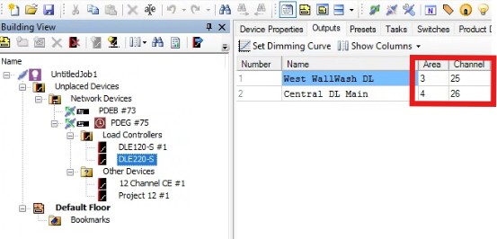 This software can help speed up discovery what areas and channels are used for your various devices. As an example I've select DLE220-S and in the Outputs tab I can see some names and areas.